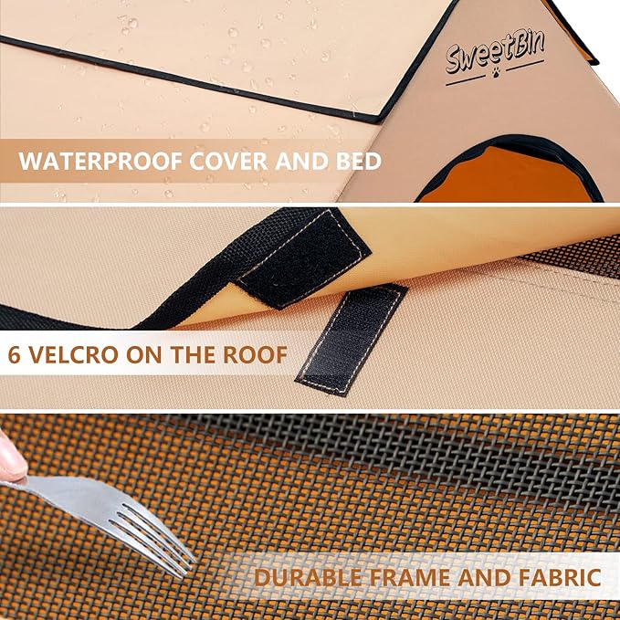- 【Waterproof Canvas】- There are 2 Air Vents on the pet outdoor shelter,in rainy days, the roof cover can be rolled down and fixed with velcros. Rain proof, thick-woven oxford fabric provides a safe perch for dogs.