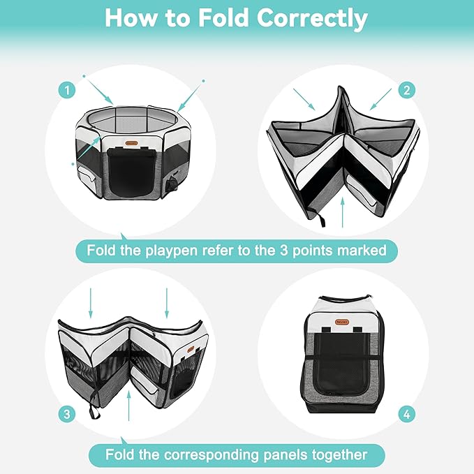- Covenient to Use - It takes seconds to open the portable pet playpen from folded storage bag, no assembly required. And also easy to folds back flat when not in use for carrying and storing. Our lightweight dog play pen indoors can be used indoors, outdoors, traveling, camping, etc.