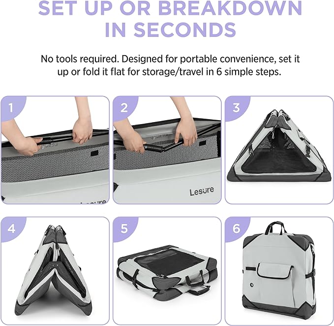 - Foldable and Space-Saving Design: This soft dog crates for large dogs provides a safe, comfortable dwelling for your pet and can be folded down in seconds to save space when traveling or when not in use. This soft-sided dog crate is quick and easy to set up with no tools required.