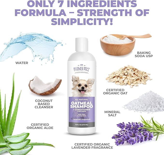 - Only 7 All Natural Ingredients & Made in the USA - Gentle Yet Effective moisturizing wash to keep your pet’s coat clean & healthy with a subtle lavender scent. A simple way to get your dog used to grooming with a pleasant bath experience.