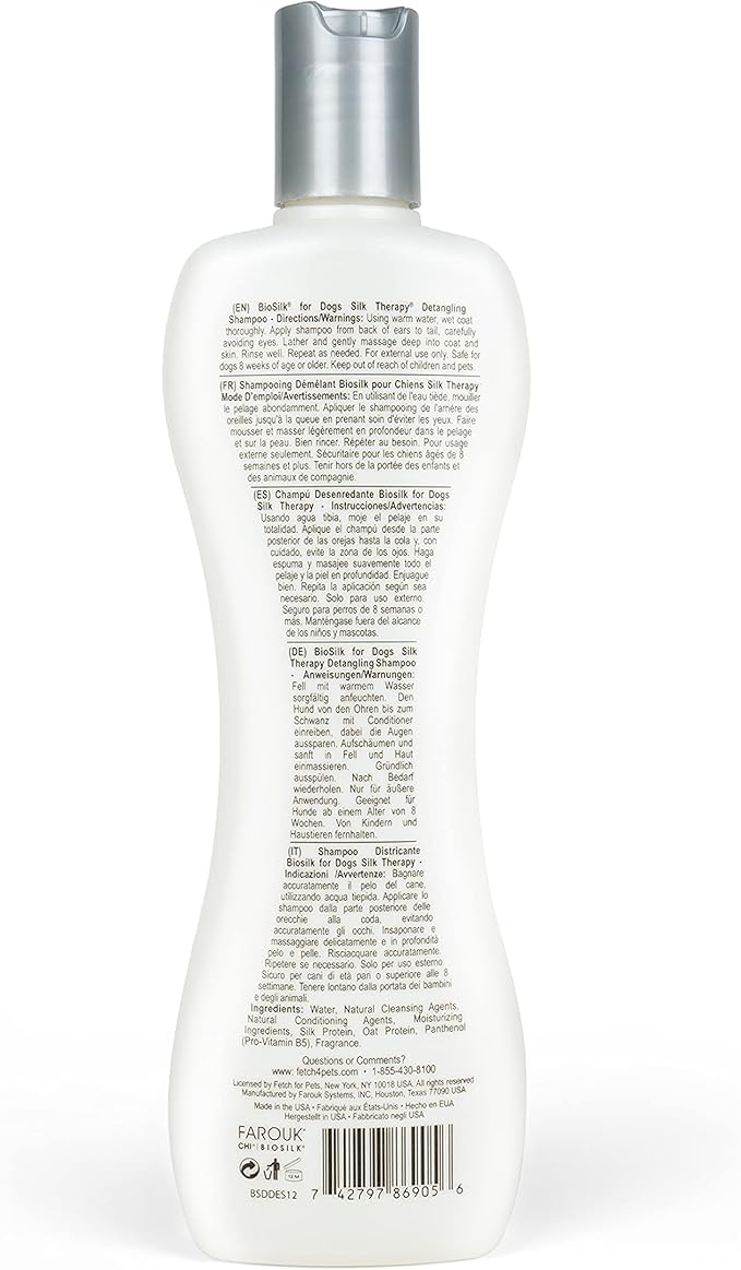 BioSilk for Dogs Silk Therapy Detangling Dog Shampoo | Sulfate Free and Paraben Free Shampoo for Dogs | Matted Hair Dog Detangler Shampoo for All Adult Dogs, 12 fl oz - 6 Pack