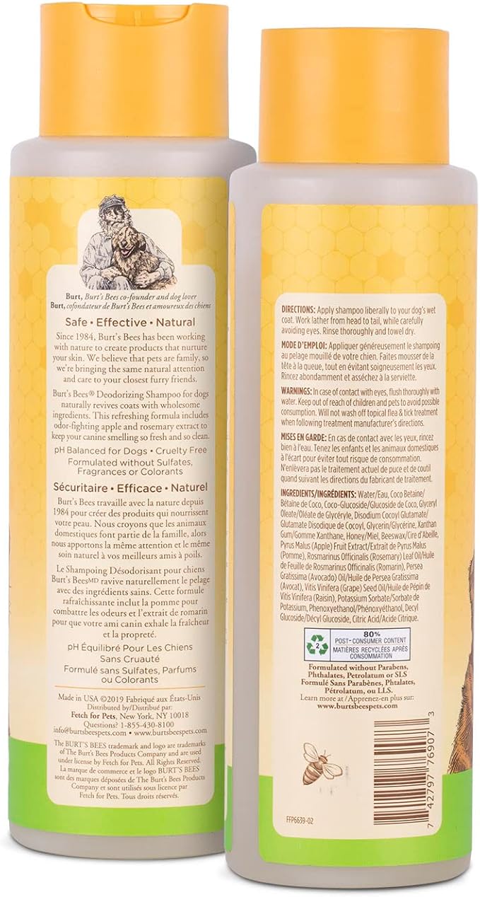Burt's Bees for Pets Deodorizing Dog Shampoo with Apple and Rosemary, 6pk, 95% Natural Origin Formulas, Dog Deodorizing Shampoo - Gentle Dog Shampoo, Best Dog Shampoo for Smelly Dogs, 6pk, 16 oz