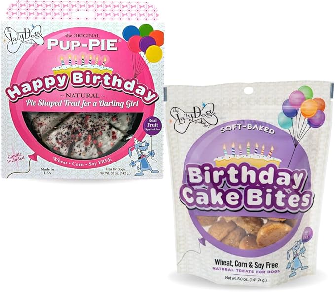 - A GREAT TREAT FOR YOUR FURRY FRIEND - The Lazy Dog Pup-PIE is a special treat perfect for celebrating your dog's birthday. Includes a 5oz bag of soft baked Mutt Mallows so your Dog can enjoy a special treat even after their special day!
