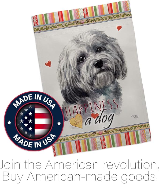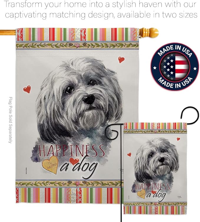 Breeze Decor Havanese Happiness House Flag Pack Dog Puppy Spoiled Paw Canine Fur Pet Nature Farm Animal Creature Applique Decoration Banner Small Garden Yard Gift Double-Sided, Made in USA