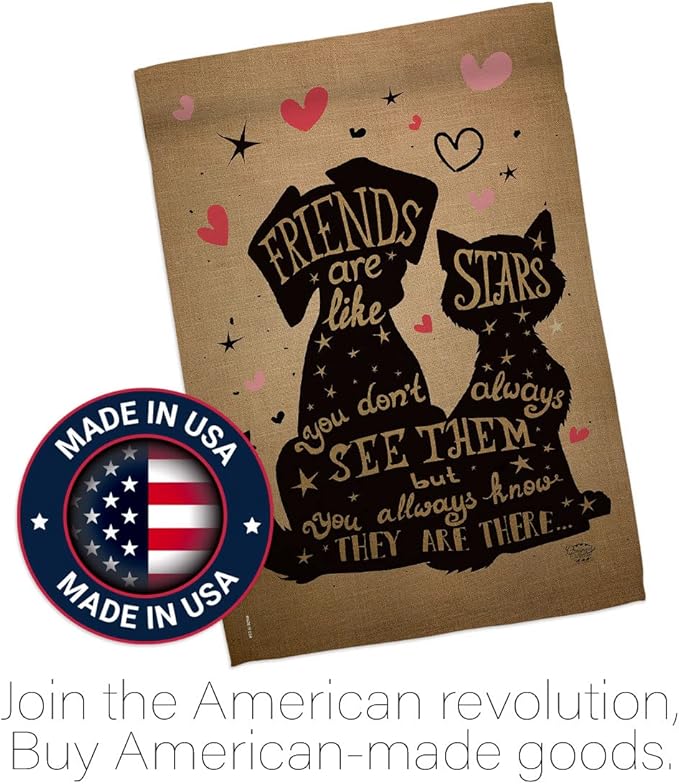 Friends are Like Stars House Flag 2 pcs Pack Dog Puppy Spoiled Paw Canine Fur Pet Nature Farm Animal Creature Decoration Banner Small Garden Yard Gift Double-Sided, Made in USA