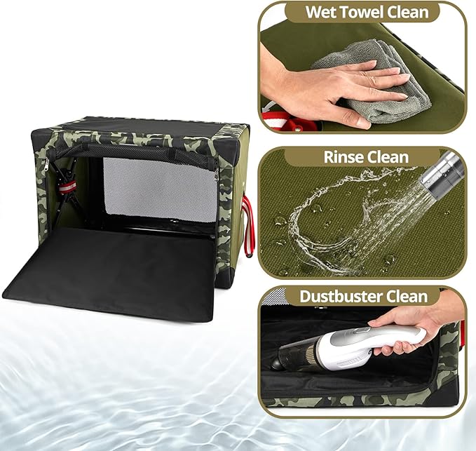 - 【Strong Frame Tube Design】 Portable dog crates use strong yet lightweight steel tube design that can be folded/unfolded in a jiffy, made of 600D Oxford cloth and Thicken frame structure. It can prevent pets from scratching and Increase stability.