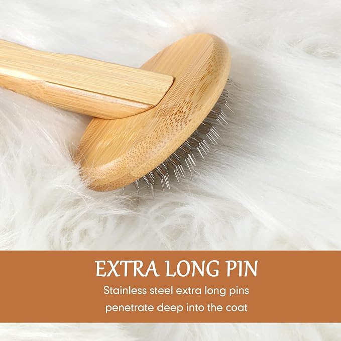 - "Reliable Material: the wool brush is made up of quality sturdy bamboo handle, flexible stainless steel pins with angled tips and a rubber cushion, which can provide a gentle flexibility when brushing, not easy to fray or break"