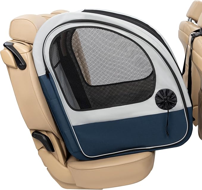 - SECURE TRAVEL: Rest assured with the security and stability of our portable dog crate car. Thanks to the headrest strap and vehicle seatbelt, the crate stays securely in place, providing peace of mind for pet owners during their travels. Our portable dog crate ensures your pet's safety and comfort during travel, making it a reliable choice for pet owners.