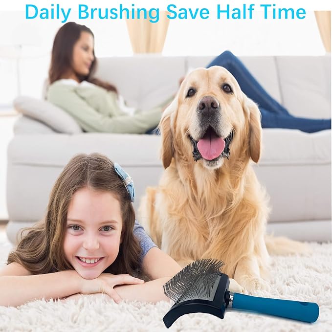 - 【Comfortable Grooming】 The air-cushioned pad with nearly 100% more pins provides a comfortable, massage-like experience while brushing, without digging into or agitating the skin - your pet will love this brush - The large slicker brush easily grooms your dog while creating a positive experience for them