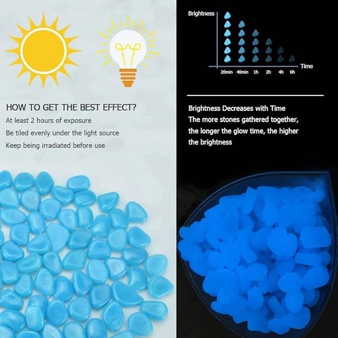 - 【Environment-friendly material】: The glow stones are made of and non-radioactive resin, which do no harm to human body and the living environment