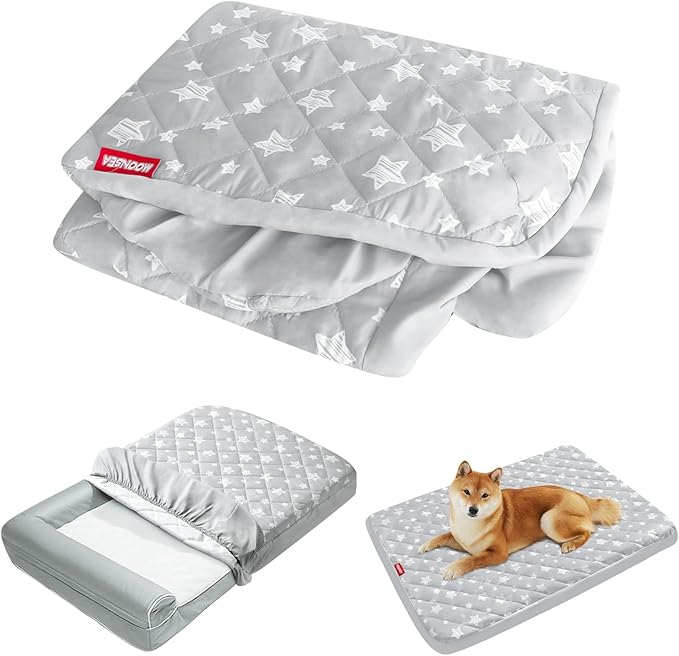 Dog Bed Covers Replacement Washable Pet Hair Easy to Remove, Waterproof Dog Bed Covers Noiseless Quilted, Pet Bed Cover Lovely Grey Star Print, Puppy Bed Cover 27x36 Inches, for Dog/Cat, Cover Only