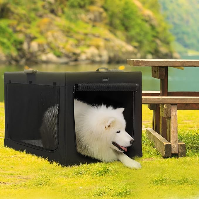 PETSFIT Portable Dog Crate, Soft Sided Dog Crate - 40 Inch Easy Set-up, Light, Sturdy, Comfy Inside with Thicken Mat, Collapsible Crate for Home and Travel Black