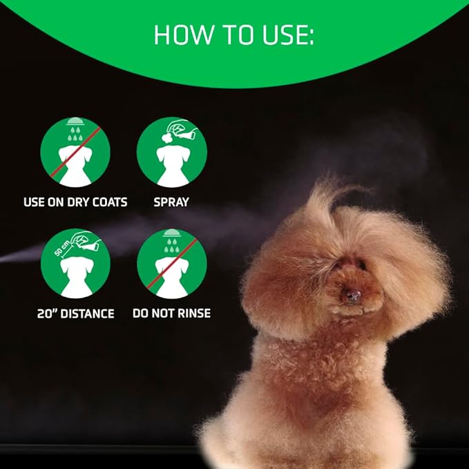 - In aerosol format to penetrate quickly to the skin sweeping the odor particles of our dog.