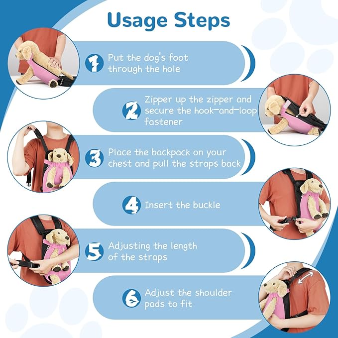 - 3 Sizes Available for Your Beloved Pet: The suggested weight for the dog front backpack is for reference only. If your dog's body length requires size S but the girth requires size M, please choose size M. Additionally, leave at least an extra inch to ensure your pet's comfort.
