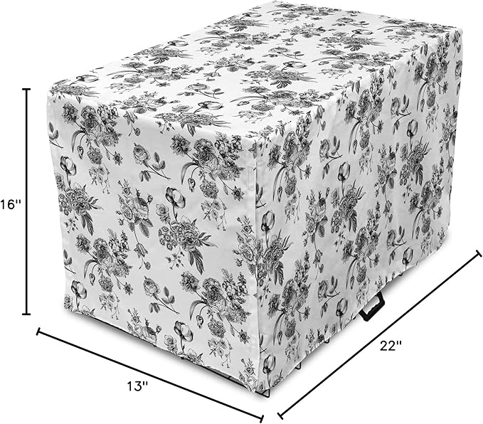 Ambesonne Black and White Dog Crate Cover, 22 Inch, Polyester Canvas Fabric, Water Resistant, Machine Washable, Easy to Use, Fits Standard Large Wire Crates