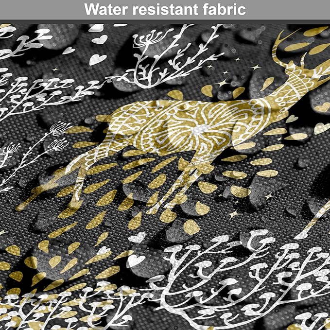 Ambesonne Christmas Dog Crate Cover, Nature Woodland and Deer Silhouettes with Oriental Ornaments Design, Easy to Use Pet Kennel Cover for Small Dogs Puppies Kittens, 22 Inch, Yellow White Black
