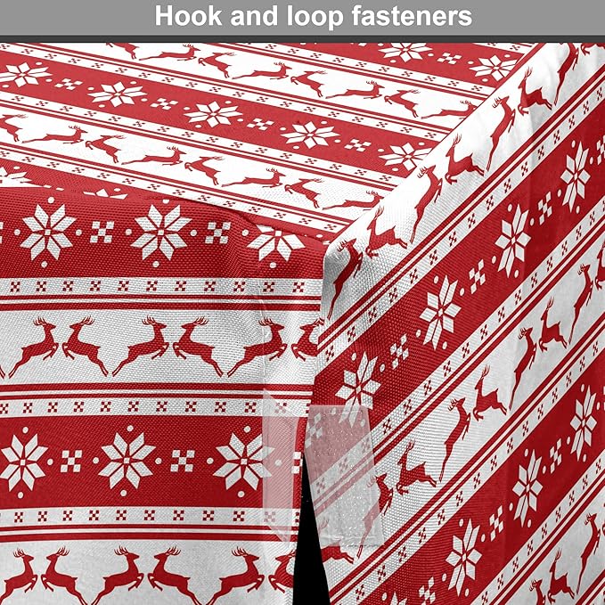 Ambesonne Christmas Dog Crate Cover, Xmas Winter Themed Deers Snowflakes in Nordic Pattern Borders and Lines Art, Easy to Use Pet Kennel Cover for Cats & Medium Dogs, 30 Inch, Ruby White