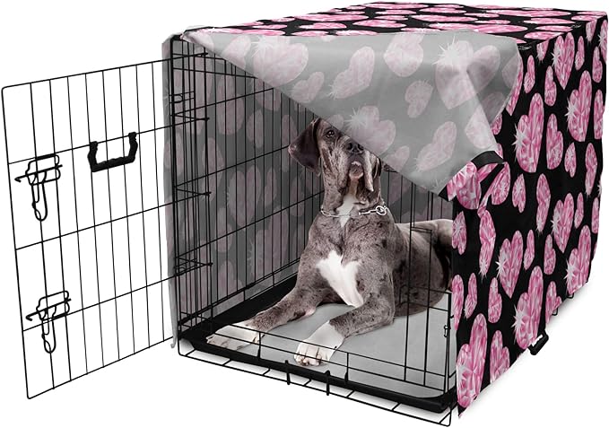 Ambesonne Diamonds Dog Crate Cover, Romantic Pink Heart Stones on Black Background Valentines Day Theme, Easy to Use Pet Kennel Cover for Medium Large Dogs, 48 Inch, Pink Black