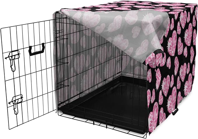 Ambesonne Diamonds Dog Crate Cover, Romantic Pink Heart Stones on Black Background Valentines Day Theme, Easy to Use Pet Kennel Cover for Medium Large Dogs, 42 Inch, Pink Black