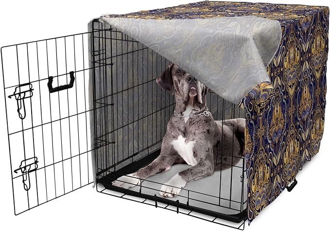 Ambesonne East Dog Crate Cover, Oriental Antique Pattern Foliage Inspirations Geometrical Design, Easy to Use Pet Kennel Cover for Medium Large Dogs, 48 Inch, Purple Yellow