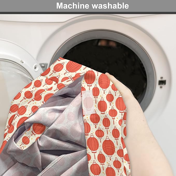 Lunarable Oriental Dog Crate Cover, Folk Lamps Cartoon Style Cheerful Pattern with Chinese Ethnicity, Easy to Use Pet Kennel Cover for Small Dogs Puppies Kittens, 18 Inch, Pale Yellow and Vermilion