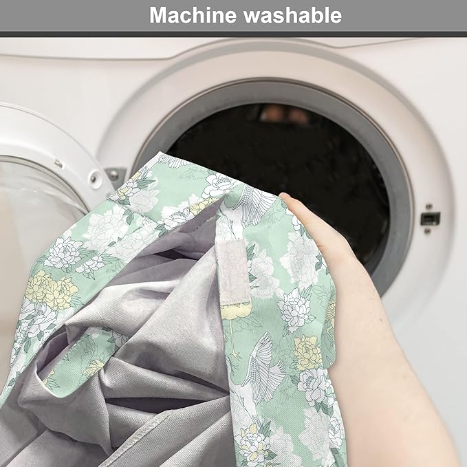 Lunarable Traditional Dog Crate Cover, Japanese Cranes Peonies Cultural Aspects Symbolic of Happy Life, Easy to Use Pet Kennel Cover for Cats & Medium Dogs, 24 Inch, Avocado Green Pale Green