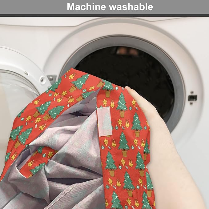Lunarable Christmas Dog Crate Cover, Baubles Jingle Bells Pine Trees Motifs Colorful Composition Print, Easy to Use Pet Kennel Cover for Small Dogs Puppies Kittens, 22 Inch, Vermilion Multicolor