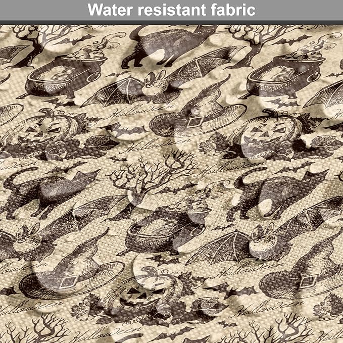 Lunarable Vintage Halloween Dog Crate Cover, Halloween Witch Hat Cauldron Fall Jack o' Lantern Black Cat, Easy to Use Pet Kennel Cover for Medium Large Dogs, 48 Inch, Pale Brown