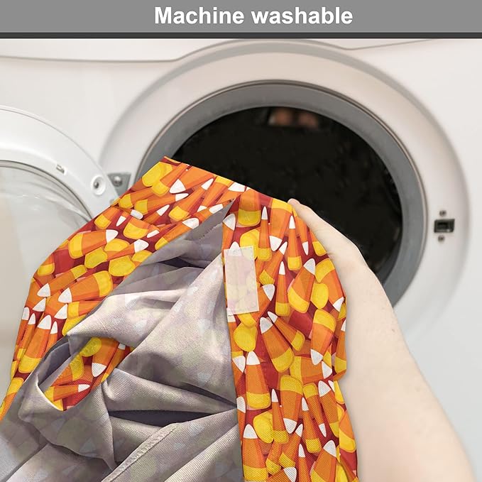 Lunarable Candy Corn Dog Crate Cover, Cartoon Style Pattern of Repetitive Nested Sweets Clutter, Easy to Use Pet Kennel Cover for Medium Large Dogs, 48 Inch, Marigold Vermilion