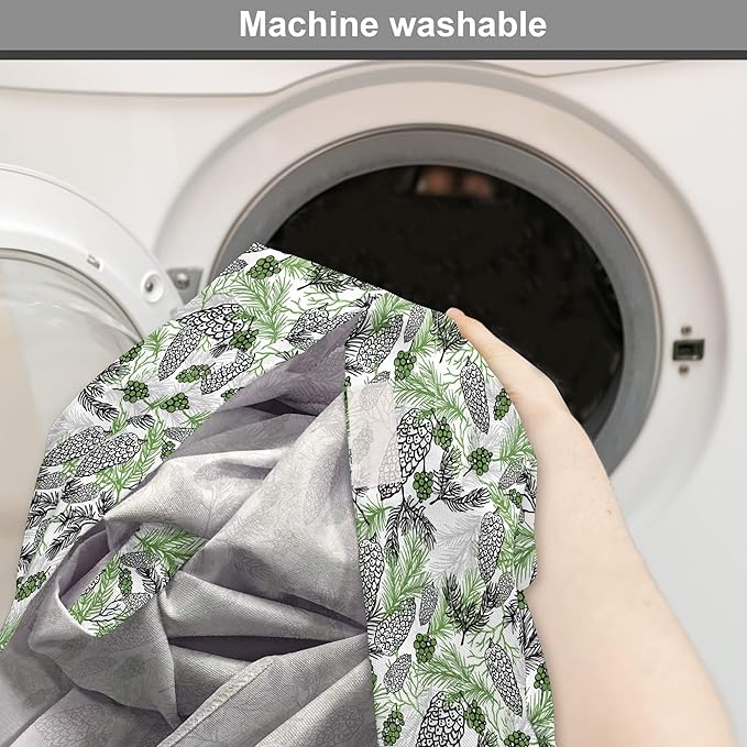 Lunarable Green Xmas Dog Crate Cover, Pine Cones and Holiday Theme Plants Fir Tree Motifs Print, Easy to Use Pet Kennel Cover for Medium Large Dogs, 42 Inch, White Fern Green