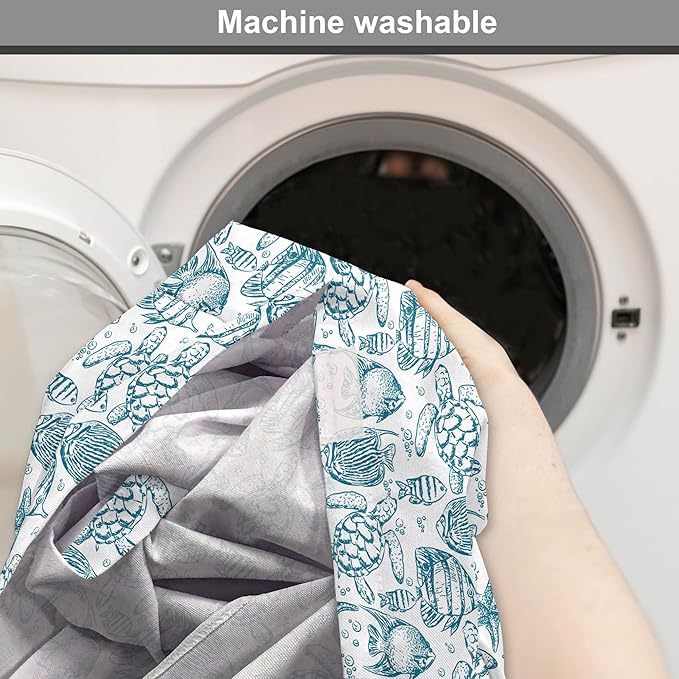Lunarable Under The Sea Dog Crate Cover, Hand Drawn Sketch Art Style Fauna of The Sea Turtle Starfish and Fishes, Easy to Use Pet Kennel Cover for Cats & Medium Dogs, 30 Inch, Blue White
