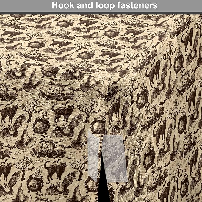 Lunarable Vintage Halloween Dog Crate Cover, Halloween Witch Hat Cauldron Fall Jack o' Lantern Black Cat, Easy to Use Pet Kennel Cover for Cats & Medium Dogs, 30 Inch, Pale Brown