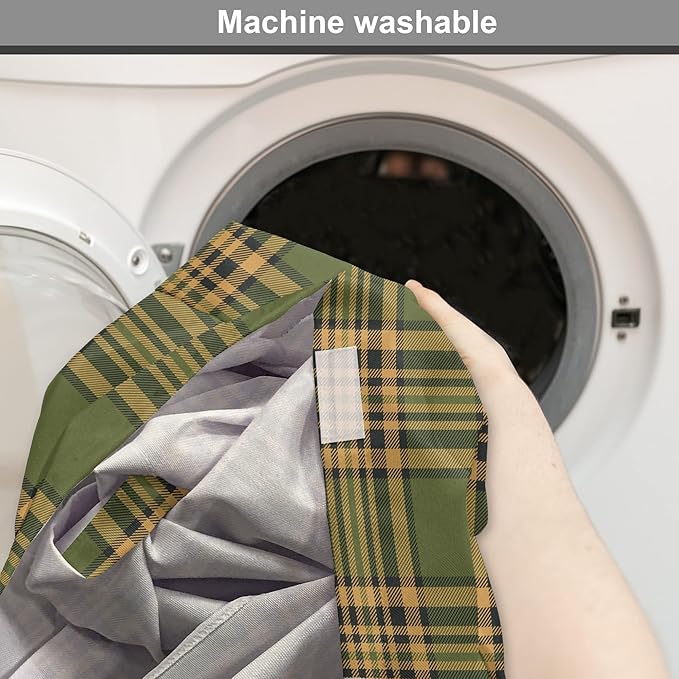 Lunarable Plaid Dog Crate Cover, Tartan Pattern in Autumn Tones Old Fashioned Design Country Illustration, Easy to Use Pet Kennel Cover for Medium Large Dogs, 42 Inch, Olive Green Mustard