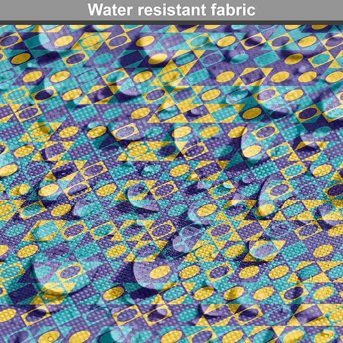 Lunarable Yellow and Blue Dog Crate Cover, Circles Squares and Triangles Mosaic Pattern with Dots Vibrant, Easy to Use Pet Kennel Cover for Cats & Medium Dogs, 24 Inch, Purple Sky Blue Yellow