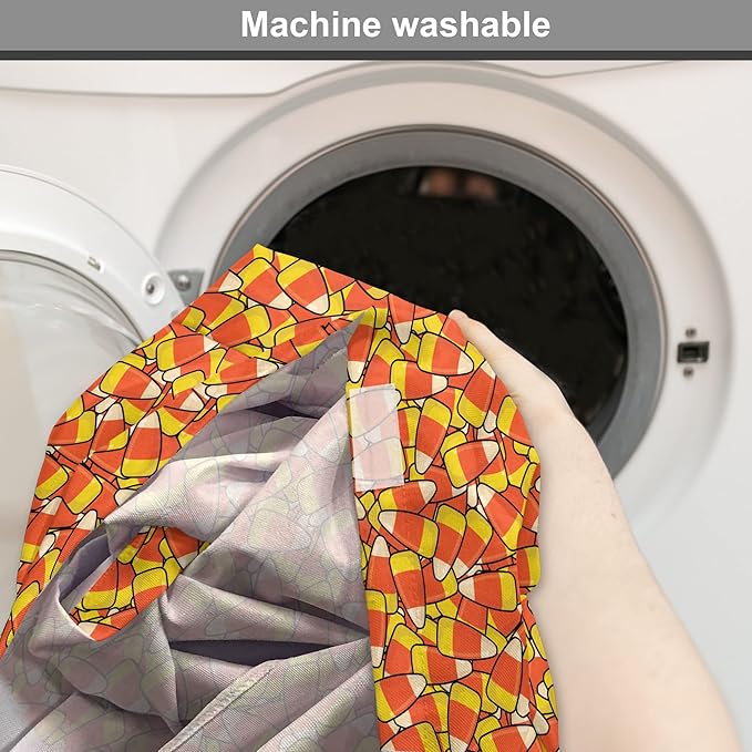 Lunarable Candy Corn Dog Crate Cover, Continuous Illustration of Cartoon Style Traditional Halloween Items, Easy to Use Pet Kennel Cover for Small Dogs Puppies Kittens, 22 Inch, Vermilion Mustard