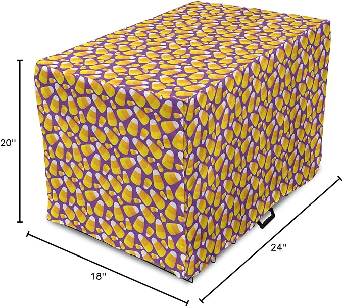 Lunarable Candy Corn Dog Crate Cover, Halloween Themed Pattern of Irregular Tasty Junk Food for Comfort, Easy to Use Pet Kennel Cover for Cats & Medium Dogs, 24 Inch, Violet Earth Yellow