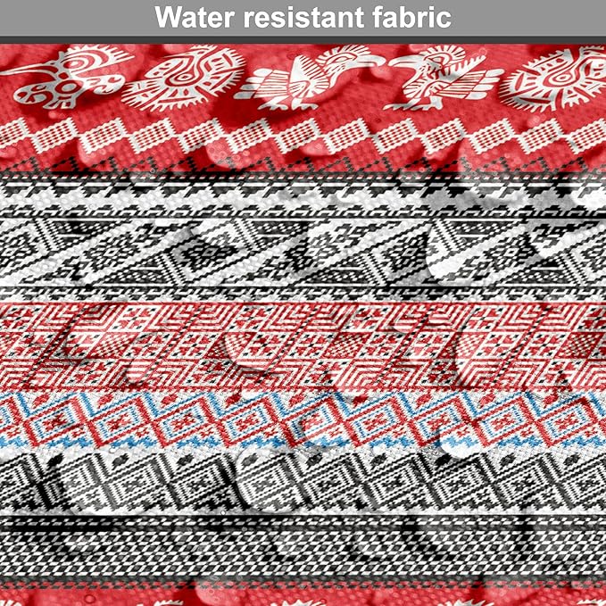 Lunarable Aztec Dog Crate Cover, Bird Motifs Abstract Indigenous Style Squares Latin American Inspired, Easy to Use Pet Kennel Cover for Cats & Medium Dogs, 24 Inch, Red Black White