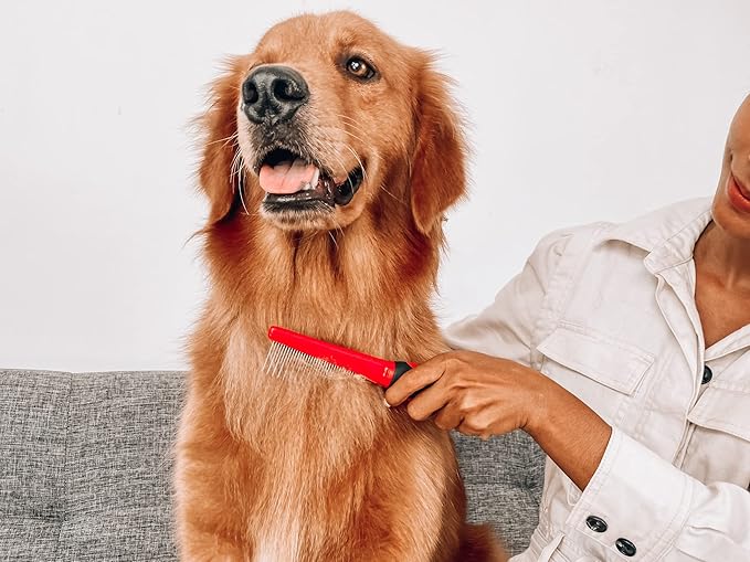 - ★ PET COMB w/ COMFORT-GRIP ANTI-SLIP HANDLE - Our dog combs for dematting provide a rubberized comfortable hand grip, allowing for a confident grip even with wet hands. Ergonomic design prevents hand and wrist strain for all day use for professional groomers.