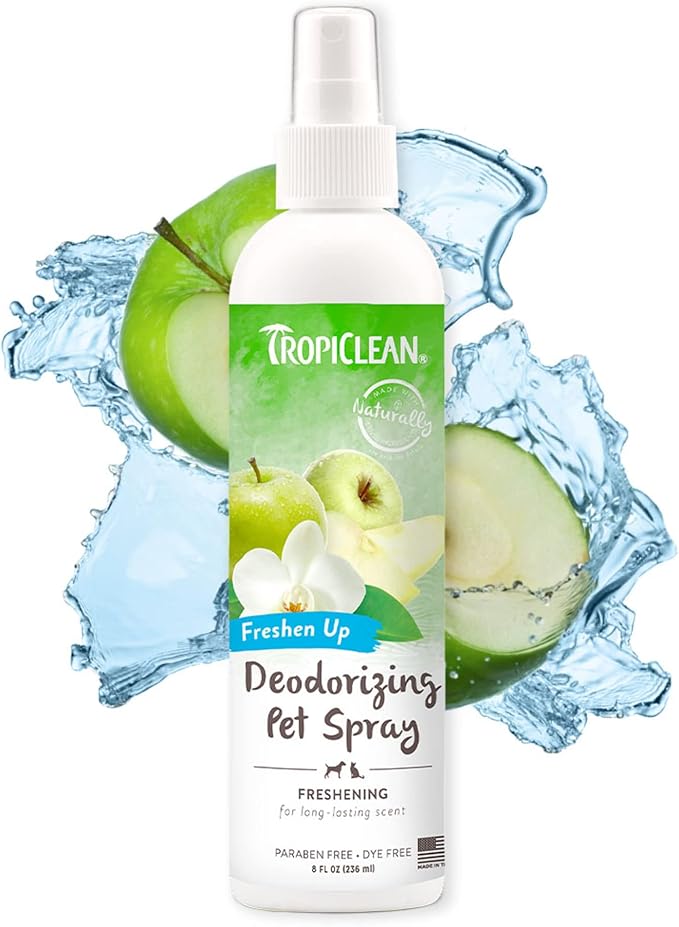 TropiClean Dog Perfume, Long Lasting Green Apple Cologne, Deodorizing Spray for Smelly Dogs, After Bath Detangling Spray with Vitamin E, Safe for Cats, 8oz.