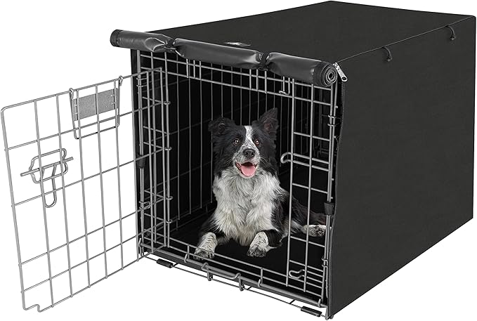 X-ZONE PET Double Door Dog Crate Cover - Polyester Pet Kennel Cover (Fits 24 30 36 42 48 inches Wire Crate) (48 Inch, Black)