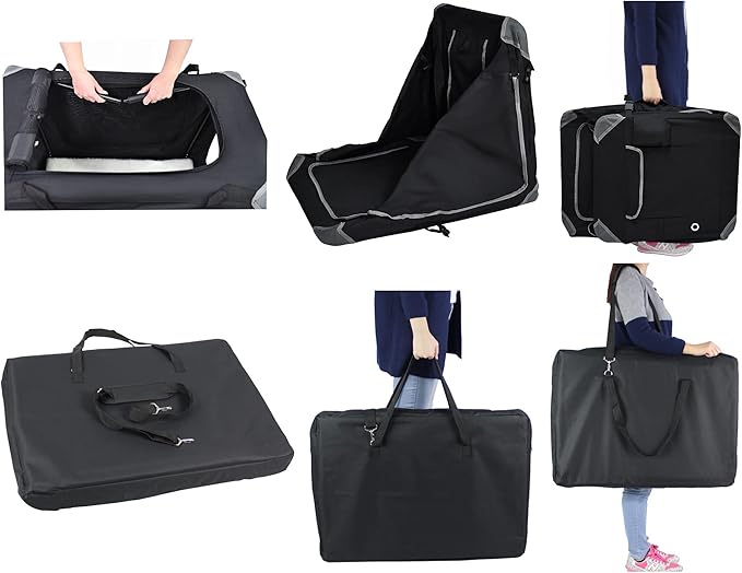 - The crate comes with a free carrying bag and fleece bed. The crate has a handle and hand carrying straps, while the carrying bag features both hand carrying straps and an adjustable padded shoulder strap, providing many carrying options. The crate can be folded down to a height of just 3 inches, making it easy to transport and store