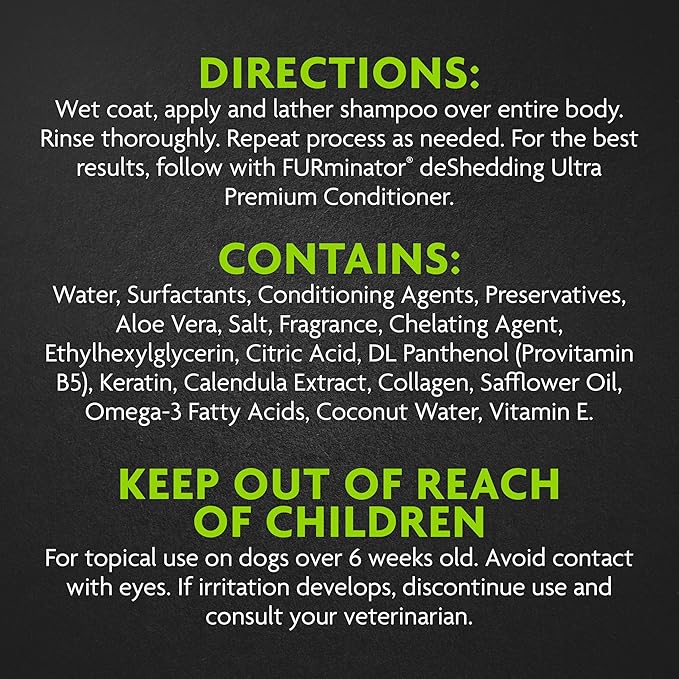- GROOMING CONFIDENCE: When used with the complete FURminator line of products, this bathing product offers a complete system for deShedding, cleansing and conditioning. For best results, use with FURminator deShedding Ultra Premium Conditioner.