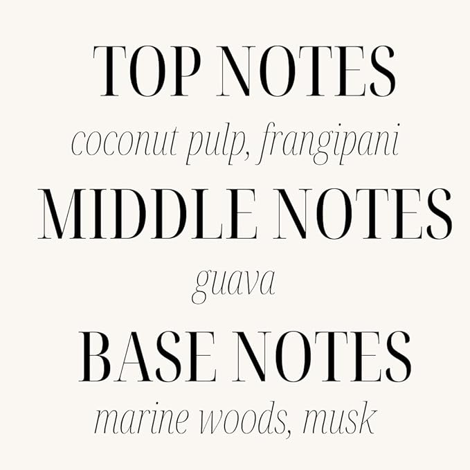 - FRAGRANCE NOTES: Top notes: coconut pulp and frangipani, Middle notes: guava, Base notes: musk