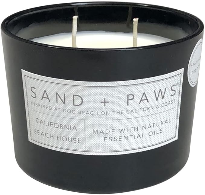 Sand + Paws Scented Candle - California Beach House–Luxurious Air Freshening Jar Candles Neutralize pet Odors and Enhance Home décor – 100% Cotton Lead-Free Wicks - 12oz