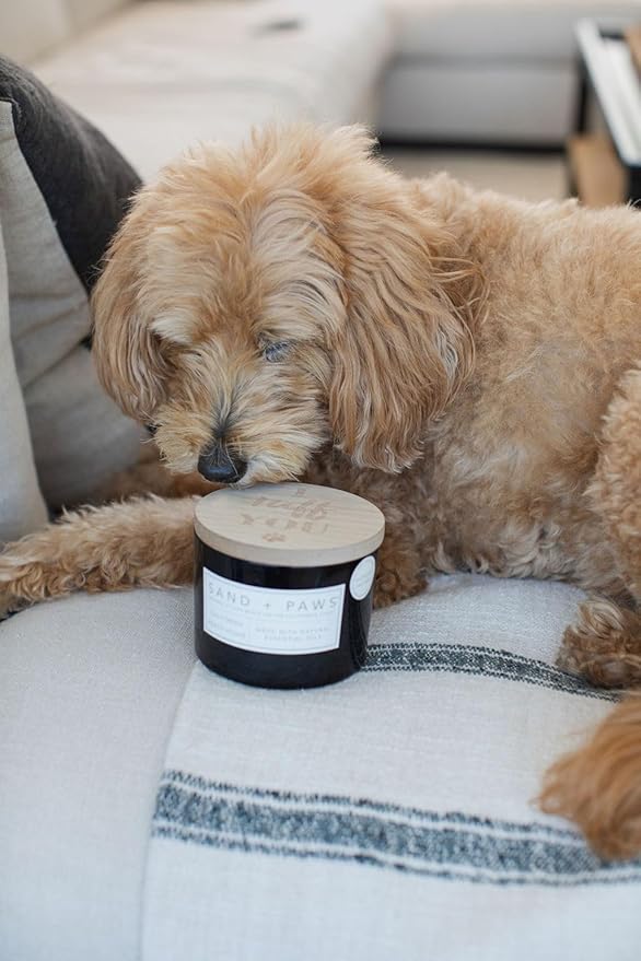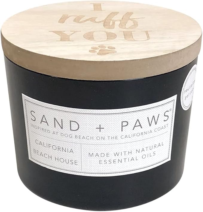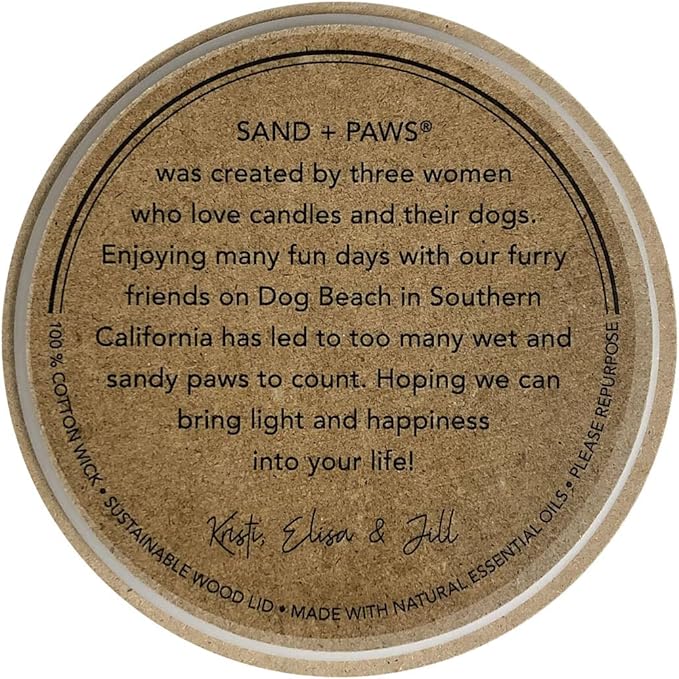 - Sand + Paws was created by three women who love candles and love their dogs. Enjoying many fun days with our furry friends on Dog Beach in Southern California has led to too many wet and sandy paws to count. Bring light and happiness into your life with this Sand + Paws candle with our signature painted and carved wood lid. Our candles neutralize pet odors and other unwanted household and kitchen odors