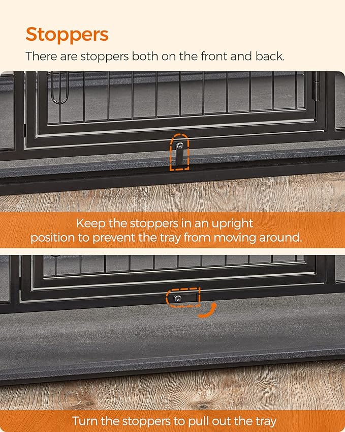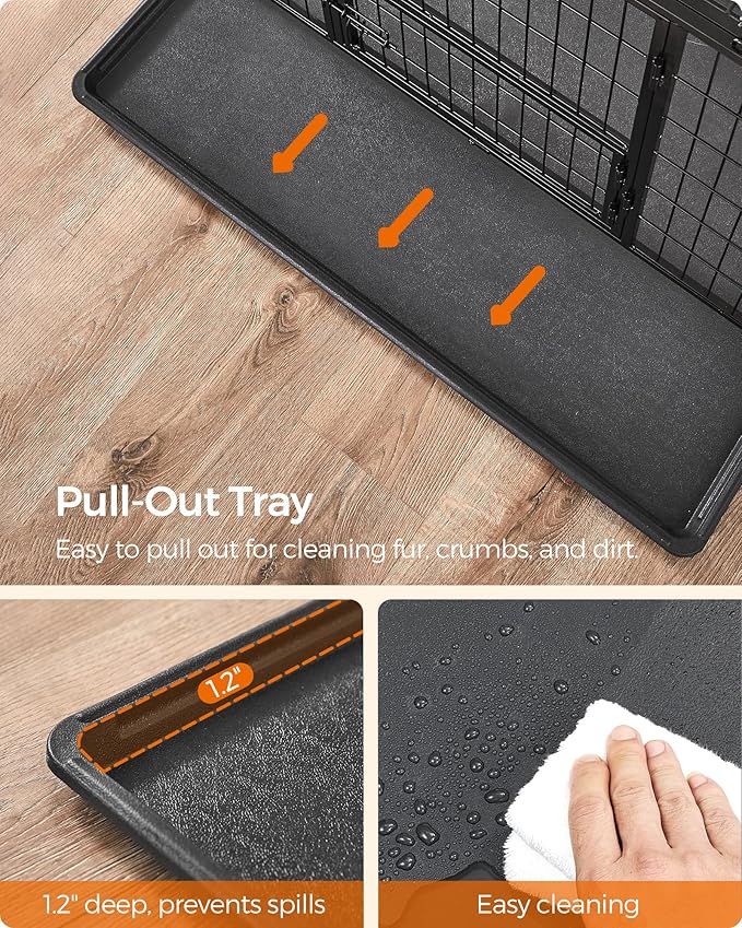 - [Easy to Clean] This dog cage comes with a pull-out tray so you can take it out for cleaning?”easily keeping your fur friend?™s place clean (it?™ll thank you for that!)