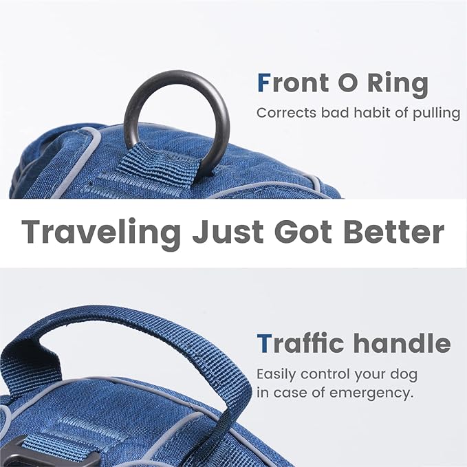 - ๐๐ซ๐๐ฏ๐๐ฅ ๐๐ฅ๐๐ ๐๐ง๐ญ๐ฅ๐ฒ: This no pull dog harness can timely control pulling of your dog by its front O ring and traffic handle, and the harness for dog is perfect for daily walking or training.