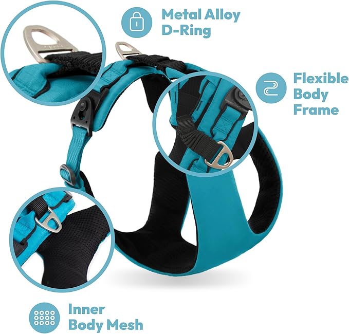 - Easy-Snap Rotational Buckles - rotates when your pup makes sudden turns which adds comfort and further complements the flexible body frame