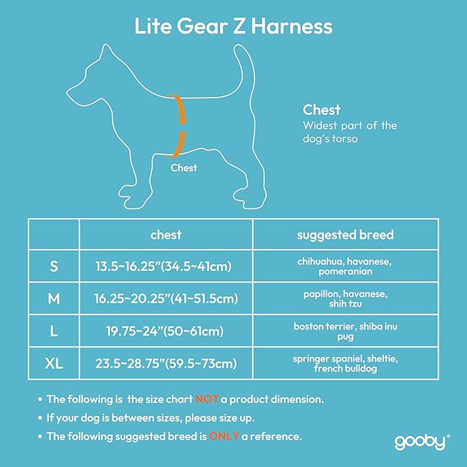 Gooby Lite Gear Z Harness - Scratch Resistant Ergonomic Harness with Shock Absorption - Head-in Harness for Small or Medium Dogs