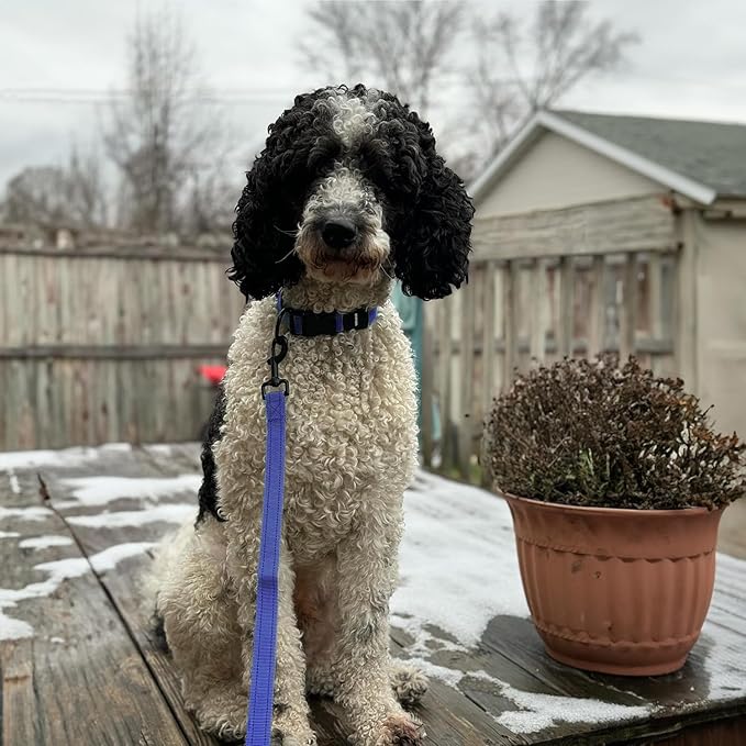 Voyager Reflective Dog Leash Collar Set with Neoprene Handle Supports Small, Medium, and Large Breed Puppies, Cute and Heavy Duty for Walking, Running, and Training - Royal Blue, L